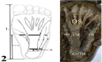 The plantar aponeurosis was then accessed by an incision on the dorsolateral aspect of the foot extending from the calcaneus to the fifth metatarsophalangeal joint. This incision created a fasciocutaneous flap comprising skin and superficial fascia that was reflected to expose the plantar aponeurosis Figure 2. The aponeurosis was then incised at its distal end and reflected. It was then cleaned and the thickness of the Plantar Enthesis (PE) was measured at the anteroinferior aspect of the calcaneal attachment of the PA. Measurements of the thickness of each of the three bands of the PA were taken at 50% of foot length. These measurements were taken using a digital pair of vernier calipers (Sealey Professional ToolsTM, United Kingdom). To minimize intraobserver errors, three measurements of the thickness of the PA at these regions were taken and an average of these recorded.