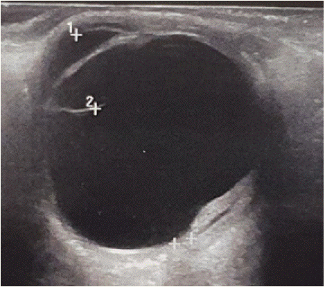 Figure 5: B-wave echo of the left eye shows extensive subretinal hemorrhage.