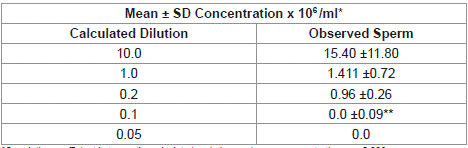 Table 1: Mean ± SD of the diluted Sperm Concentration determined using Makler Chamber.